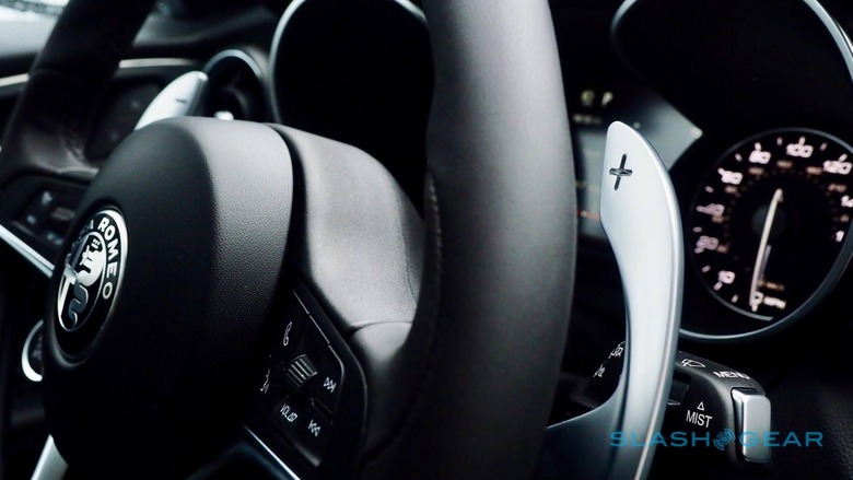 It wouldn't be an Alfa Romeo without some quirks, and the most noticeable are spotted from the drivers' seat. The paddle-shifters aren't just solid metal, but vast, like some sort of Klingon ceremonial weapon. I can't help but wish some of their budget had been spent on a larger display for the infotainment system, though. It's broad, but squat, as though you're looking at your navigation through a letter box. It gets even worse with the reversing camera, which occupies a needlessly small amount of the display. The software menus, which you navigate with a control wheel rather than tapping the screen, can be convoluted, and Apple CarPlay and Android Auto are in the pipeline but not available yet.