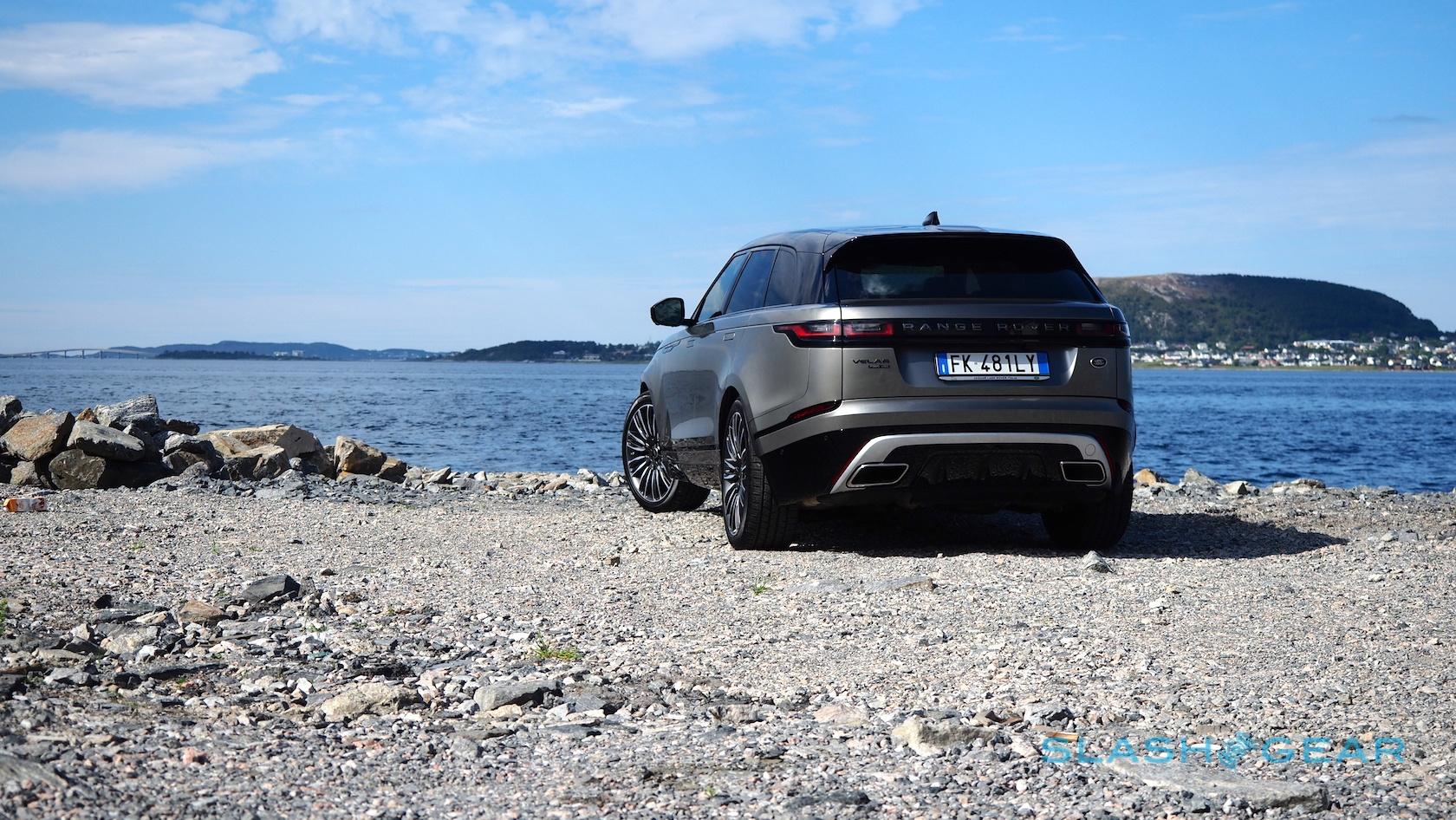 It borrows styling cues from both, but at the same time introduces a new, pared-back design language for the automaker. The rest of the world will get laser headlamps while the US makes do with LEDs, but either way they're narrow and give the Velar an aggressive look from the front. Inside, there's space for five and a minimalistic dashboard, outfitted with Range Rover's new twin-touchscreen infotainment system.