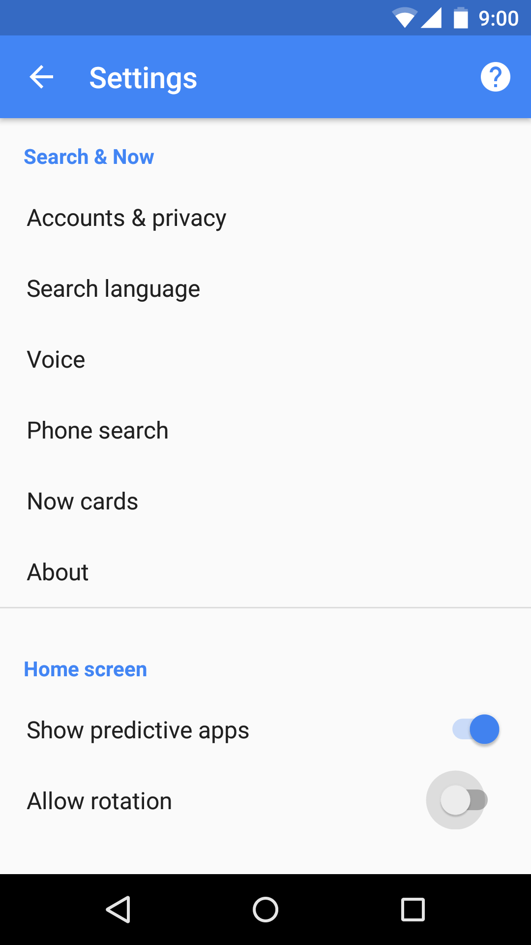 A more hidden treasure, but also related to the new Google Now launcher is landscape mode. Yes, finally, Google is supporting rotating the homescreen and the launcher. Strangely, it's not a default feature even if you have auto rotation turned on. You'll have to go to Google settings to flick the switch.