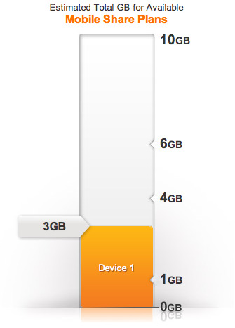 Users interested in working with AT&T's shared data plans in the near future should head to their Mobile Share Planner tool where you'll be able to select up to 10 devices to share then push however much data you need to the lot of them. This planner allows you to select which kind of devices you'll be using and to estimate how much data each of these devices will be using per month. AT&T will almost certainly be recommending a Mobile Share plan for you if you've got more than one device – count on it!