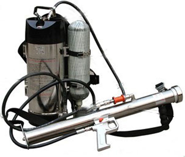 That dye won't come off the people hosed with it for about three weeks apparently. The Crowd Buster comes in a backpack style that can be worn or carried and a larger style that can be mounted on a truck or ATV. Either version can shoot a micro pelletized fog or directed stream up to 150-feet from the user. The other canister with the fiber weave is for compressed air.