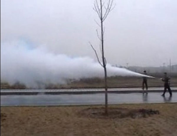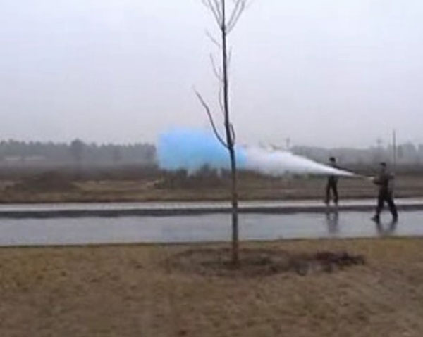 Crowd Buster Shoots Massive Cloud Of Pepper Spray And Blue Dye To Disperse Crowds