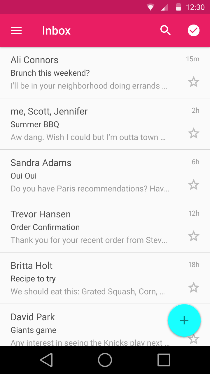 In Android L and with Material you're going to see color, as Google puts it, "inspired by bold color statements juxtaposed with muted environments, taking cues from contemporary architecture, road signs, pavement marking tape, and sports courts." Google furthermore suggests that developers "emphasize bold shadows and highlights" and that they "introduced unexpected and vibrant colors" in their app designs.