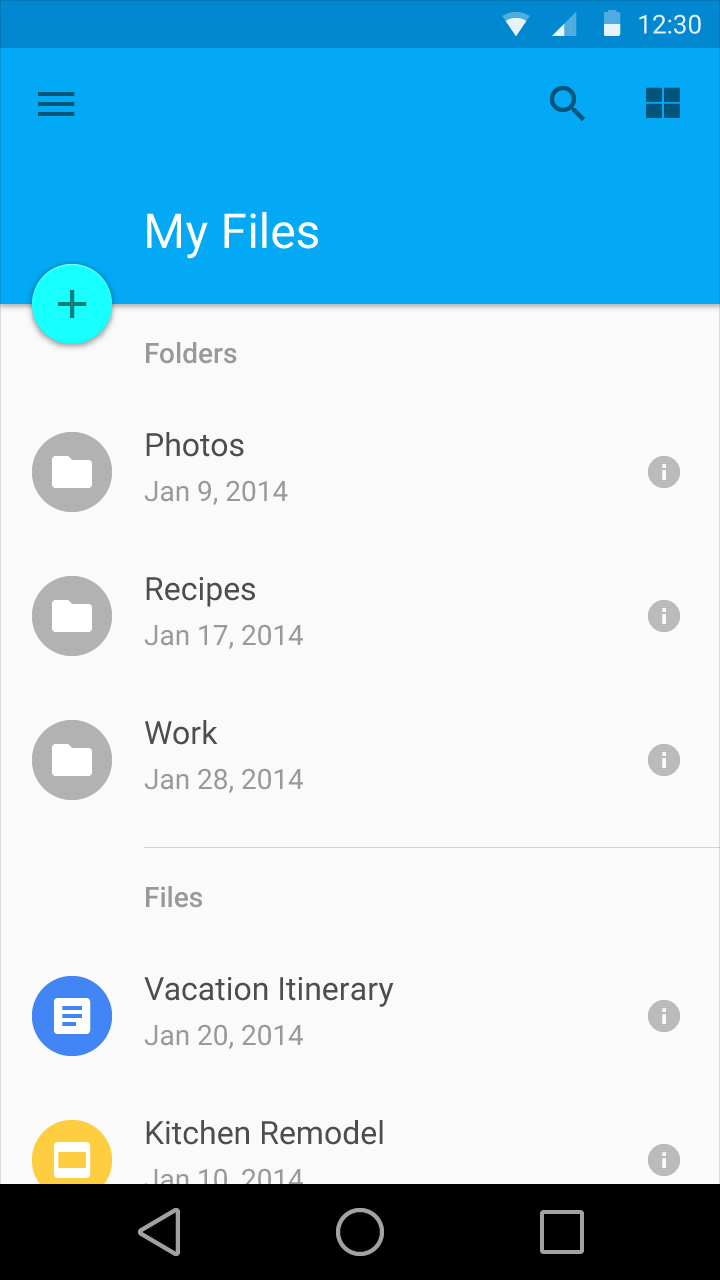 Color Themes are also part of Google's suggestion collection for Material and Android L. The two main themes are Light and Dark, both shown here: