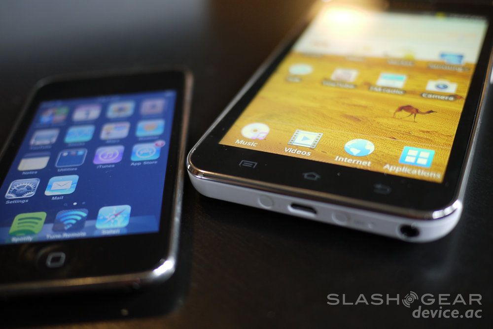 For video and games, on the other hand, here the TFT LCD on the 5.0 player really shines the brightest. Not literally, mind you, as the pixels are much more densely packed on the iPod Touch at 640 x 960 pixels on a 3.5-inch display, but even at 480 x 800 pixels on a 5-inch display there is much to be said about the extra space. The space of course comes in handy when you want to actually see the detail in your Transformers movie rather than a highly-packed jumble of intensely colored tiny, tiny bits. It also comes in rather handy when you want to use on-screen controls for games – on the iPod Touch and the 4.0 Galaxy Player, you'll be blocking quite a bit with your thumbs.