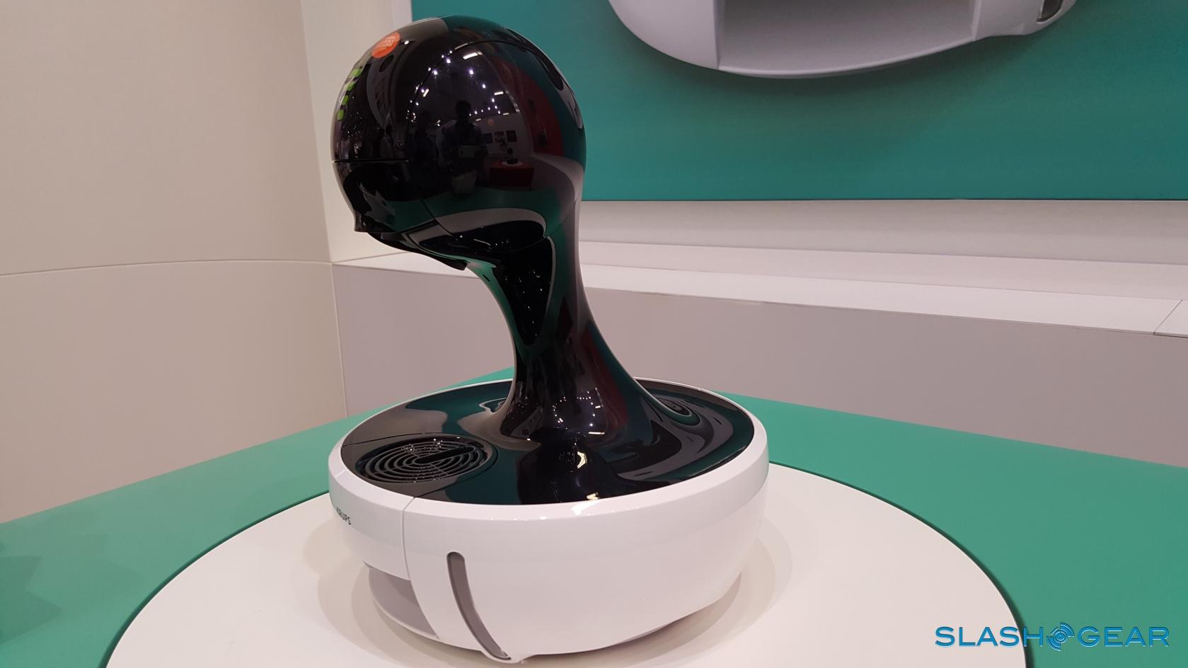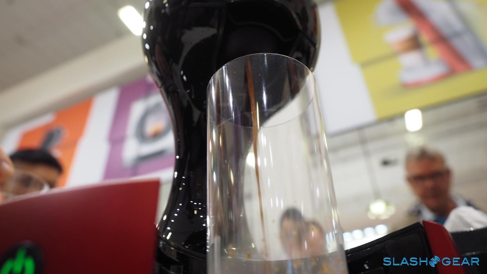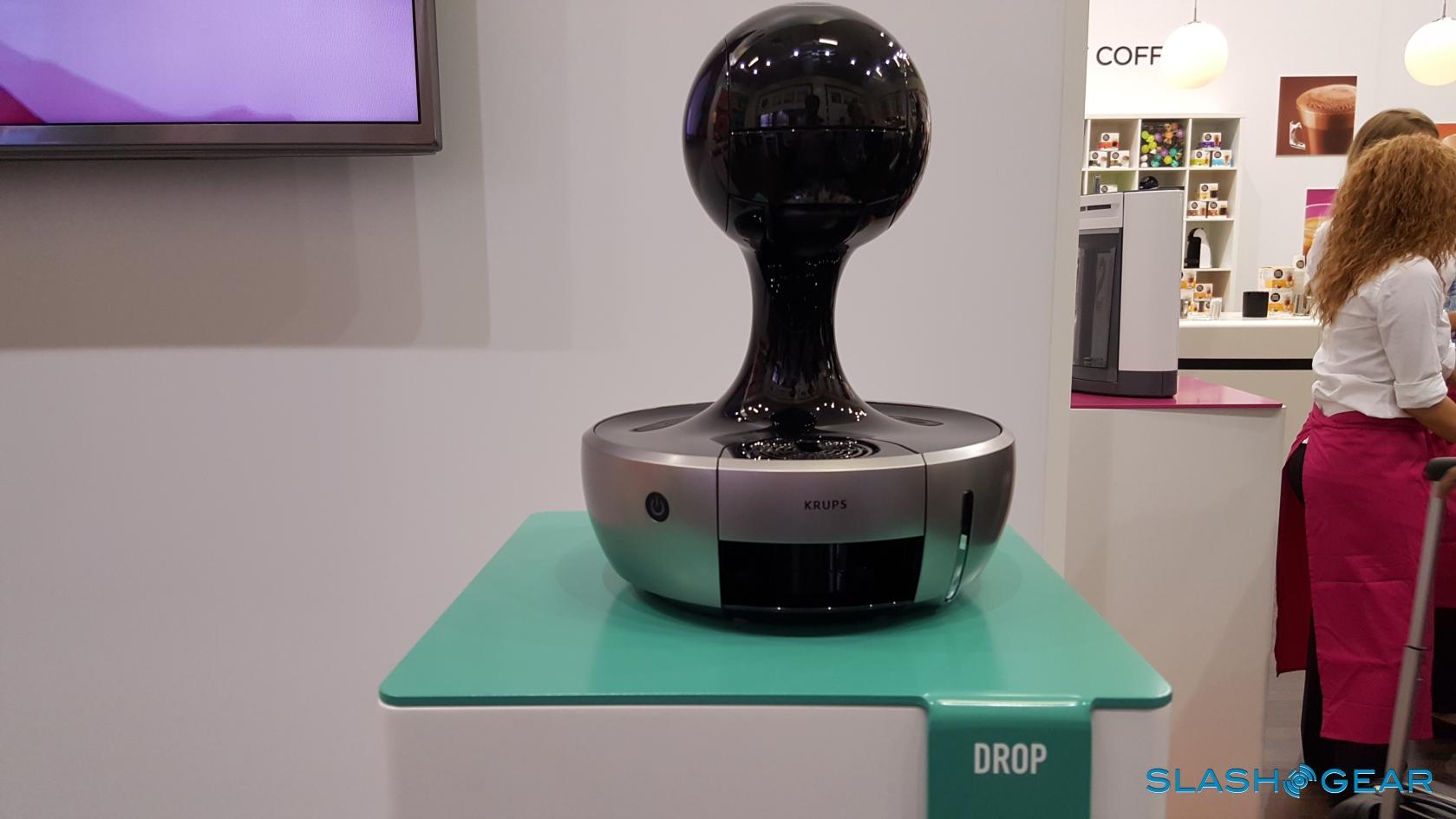 We stopped by Nescafe's booth to give its "art" of coffee brewing a taste. The Drop automatic is a little coffee machine inspired by a droplet of the drink, with the pod slotting into the top section and your cup sitting on a height-adjustable platform underneath.