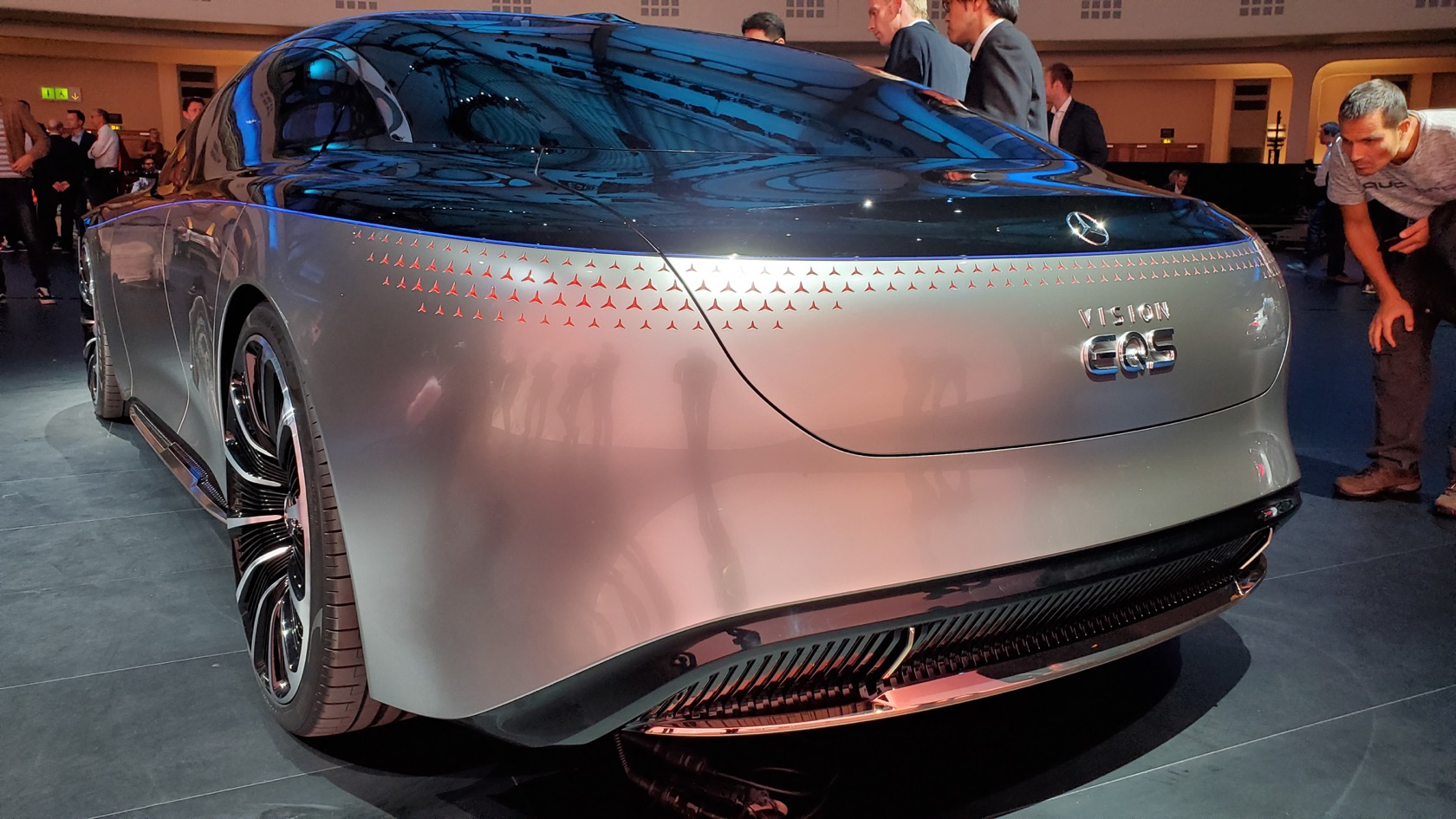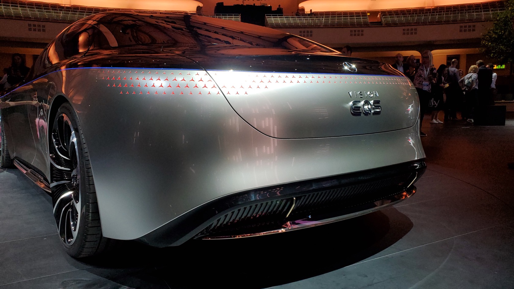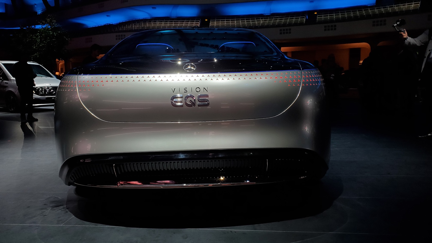 So, while there's all-wheel drive from twin motors, more than 469 horsepower, and around 560 lb-ft of torque, that's really not what the VISION EQS is all about. Instead, it's a design exercise looking at the aesthetic of future EVs, with plenty of hidden LED lights. Inside, there's artificial leather, a roof liner made with "ocean waste" plastic, and microfiber from recycled PET bottles.