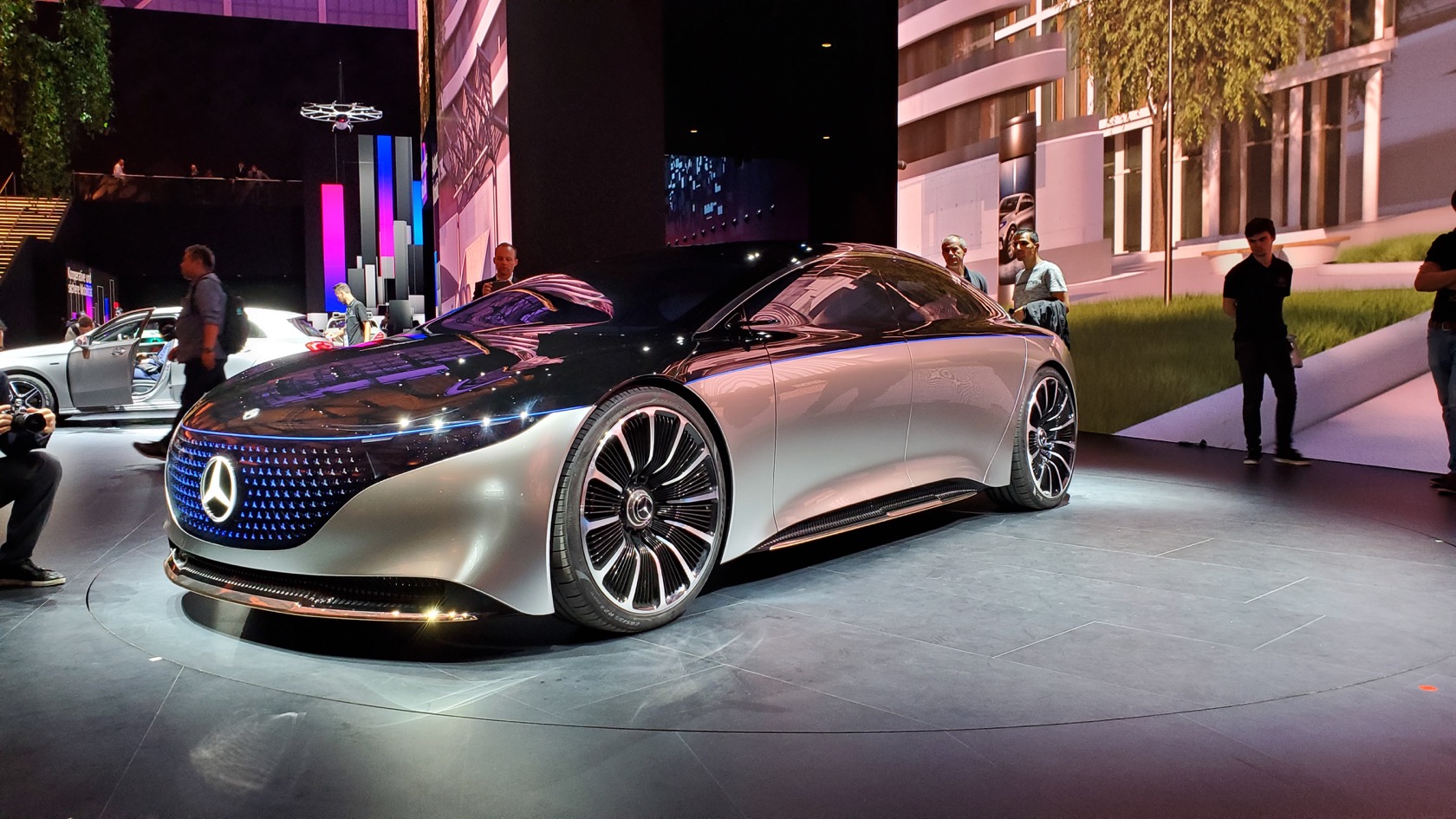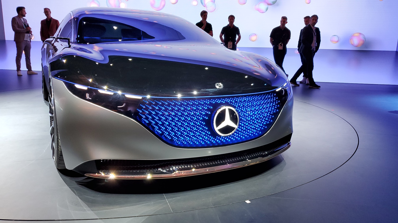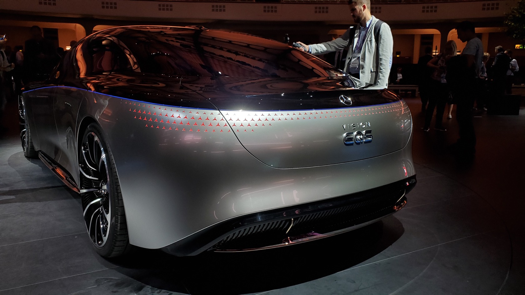 So, while there's all-wheel drive from twin motors, more than 469 horsepower, and around 560 lb-ft of torque, that's really not what the VISION EQS is all about. Instead, it's a design exercise looking at the aesthetic of future EVs, with plenty of hidden LED lights. Inside, there's artificial leather, a roof liner made with "ocean waste" plastic, and microfiber from recycled PET bottles.