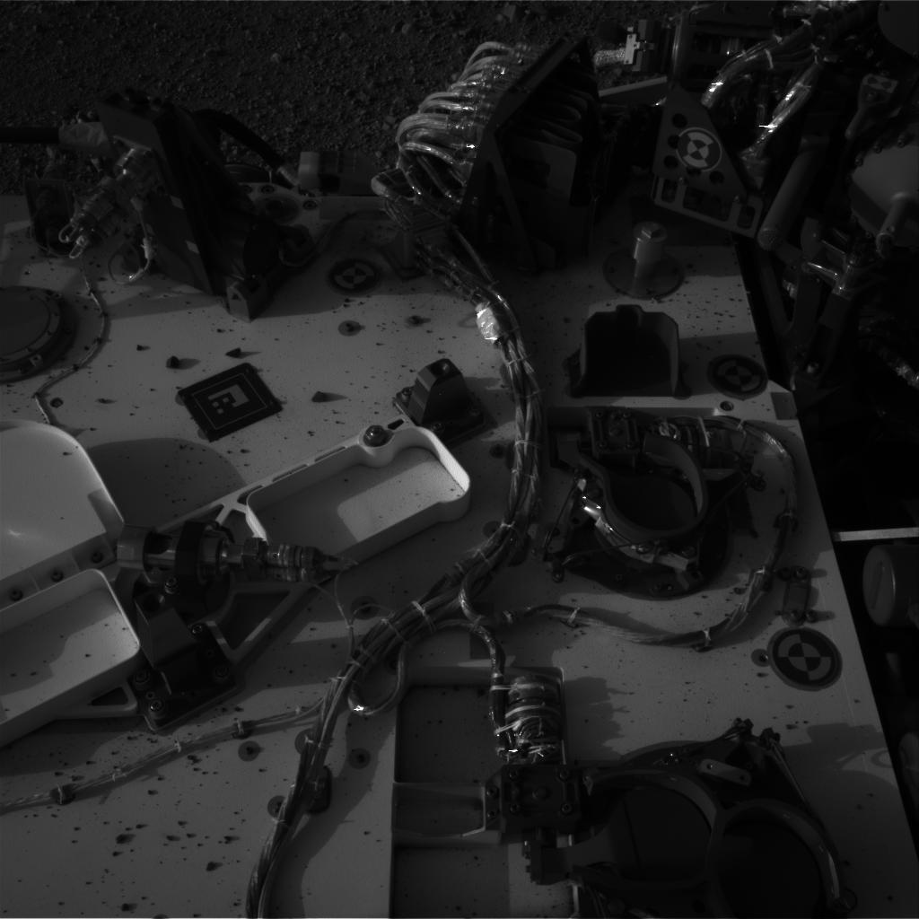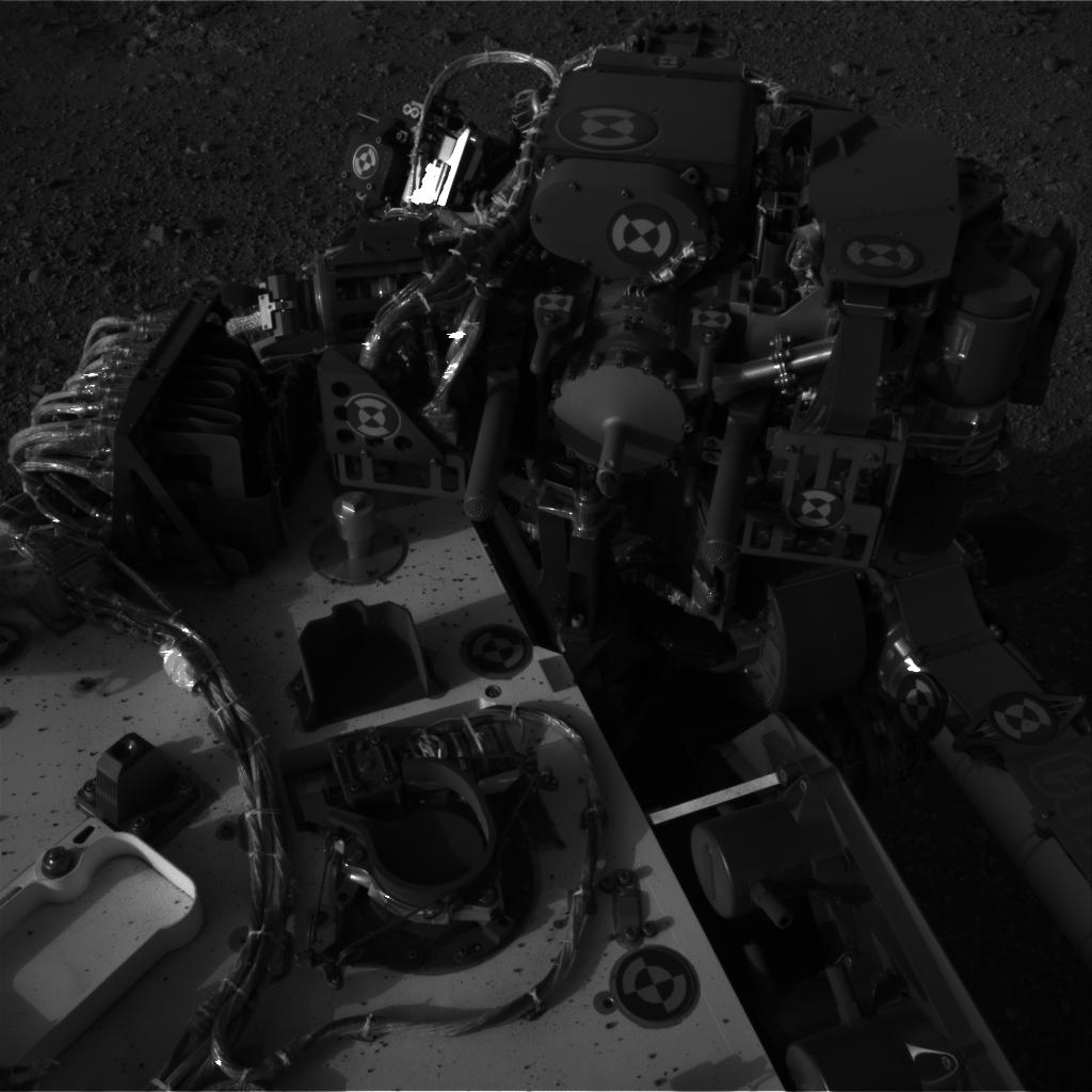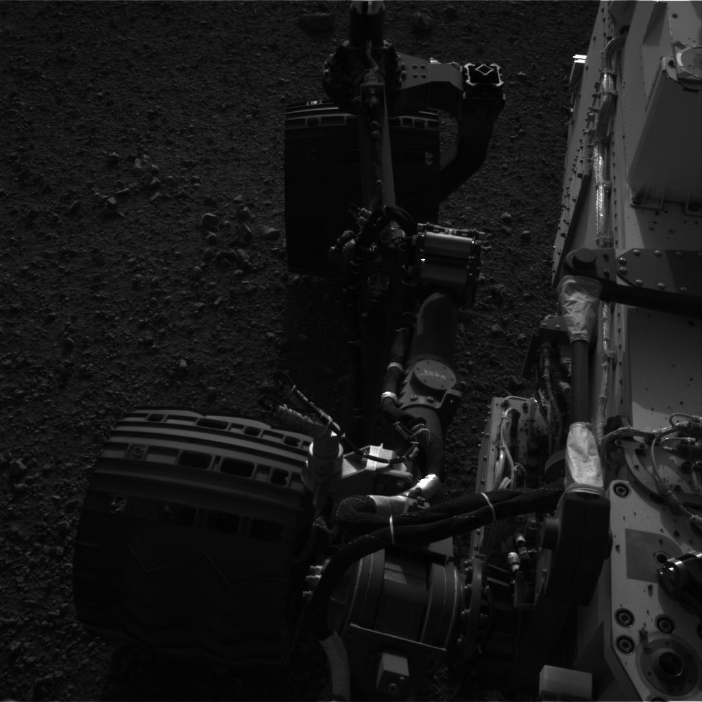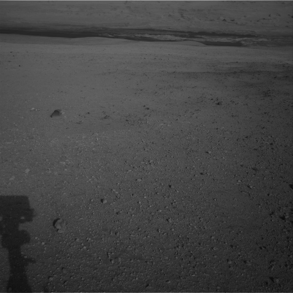 Thus far all we're seeing is a bunch of rocks save for the machinery above and below the camera's vision. The metal and plastic you see is actually part of the Curiosity rover, of course, and the cameras are able to look down further to make sure the rover is all there should a space monster come to take a swipe of it. While you're at it, have a peek at the landing video NASA has provided of the beast heading towards the planet from earlier this week: