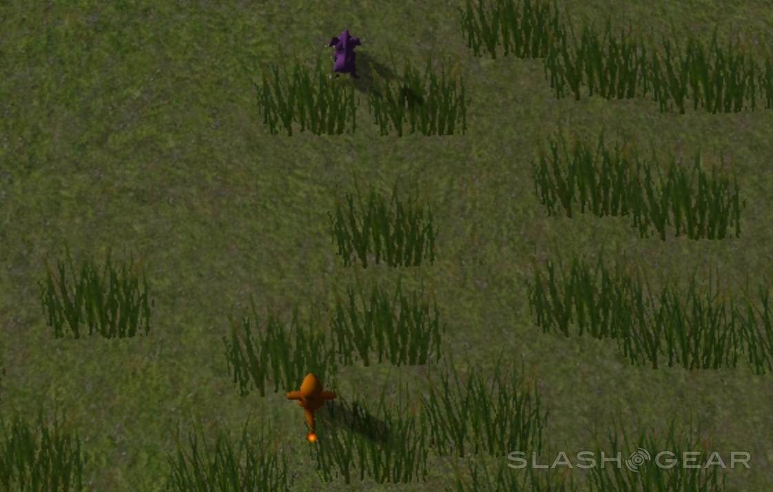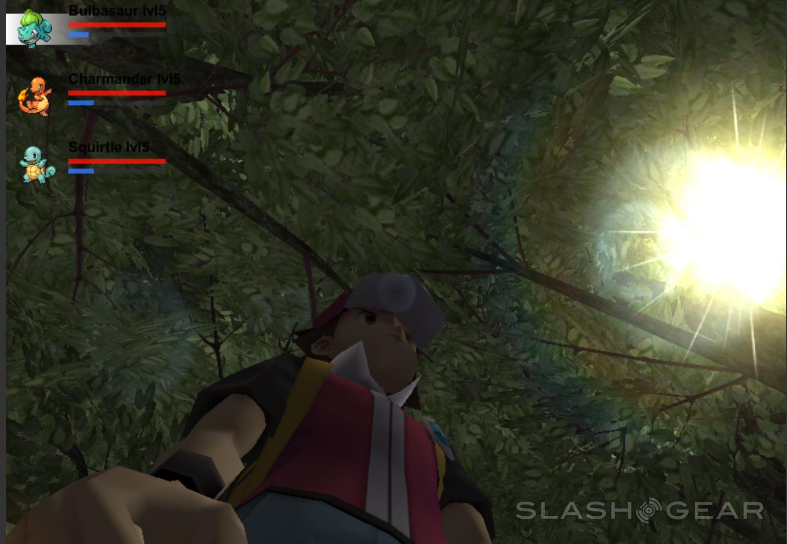 What you're about to see is some very, very rudimentary gameplay. Something like an ultra stripped-down version of what we're seeing in EverQuest Next Landmark, but without the building. Instead of pickaxes and the ability to create a castle, we've got Bulbasaur, Charmander, and Squirtle. Instead of a diverse, rich landscape, we've got hills, trees, water, grass, and one waterfall.