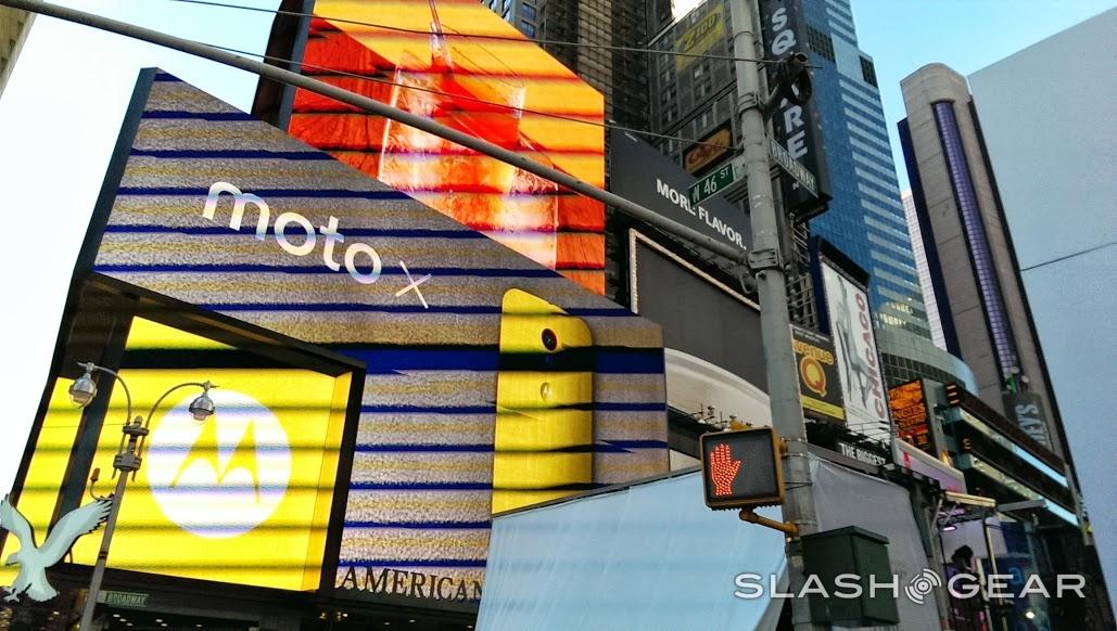 Meanwhile you'll find Google and Motorola making certain they're heard this week with the key placement of a massive video ad spot above Times Square's American Eagle store (as you'll see in the gallery below). There this Moto X video billboard played with a visual loudness that was impossible to ignore as it towered above the Samsung Note event. Meanwhile Samsung billboards rang out in white from several well-spotted angles.