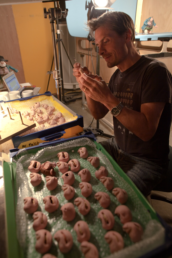 Whitlock: "For us it's pretty much the same [as in past stop-motion films]. You're in your unit 8-10 hours a day, you're on the set with the puppets and working away on it. You may come into situations now where there may be a bit more green screen in the background, but we still shoot with all puppets on set in some way even if the backgrounds and skies may be added later on – pretty much [otherwise] it's really similar to the way we've always shot. "