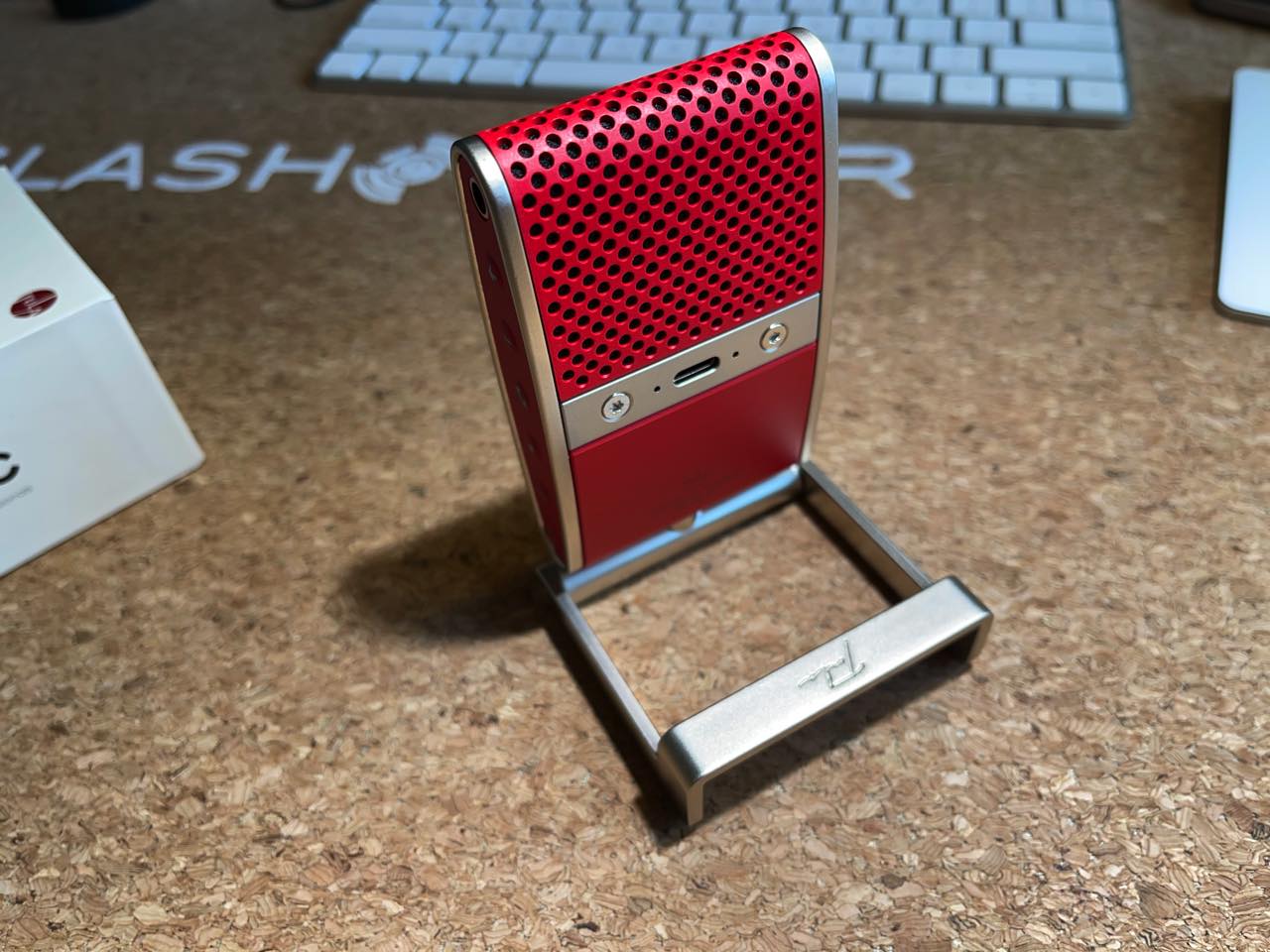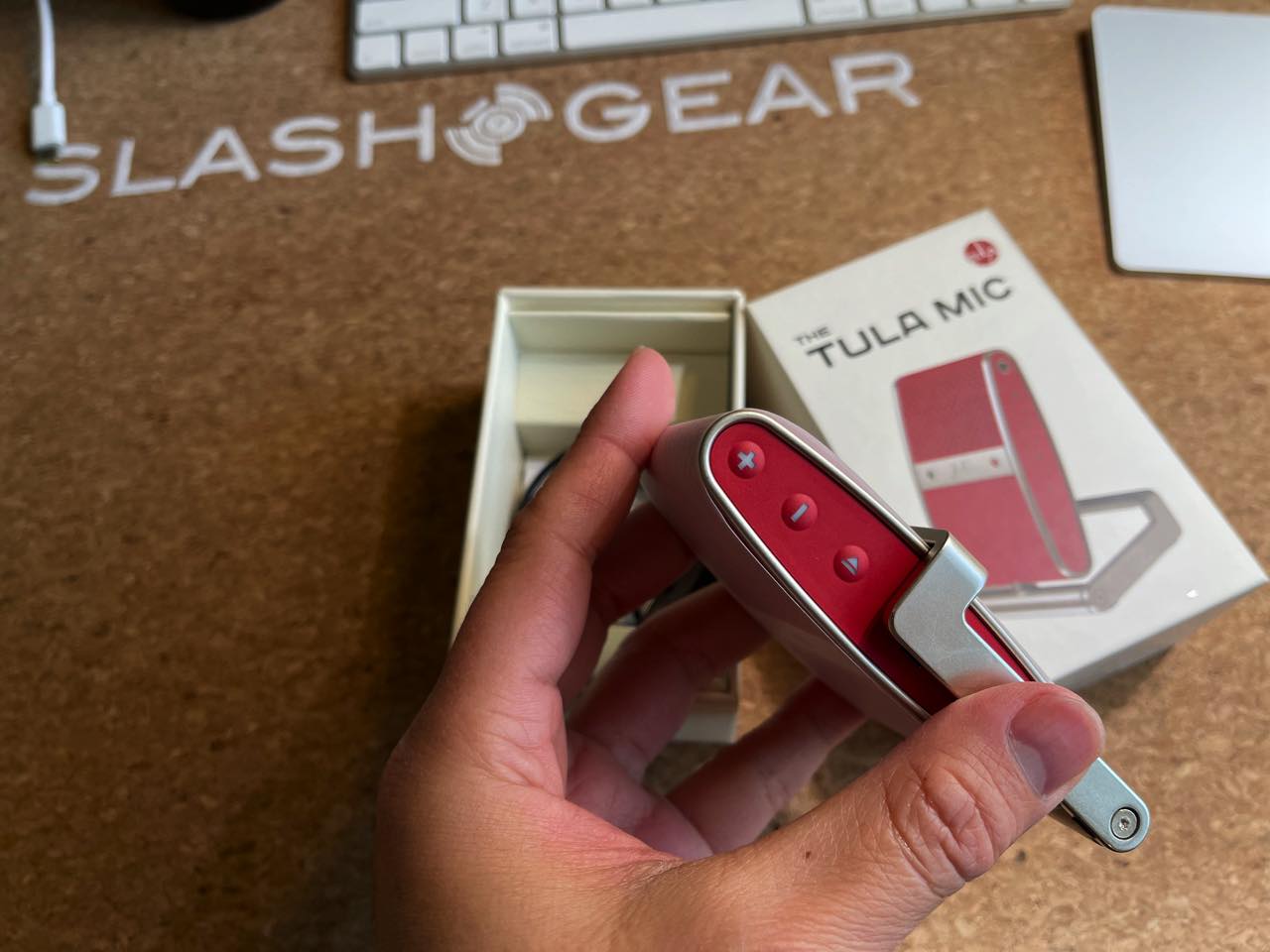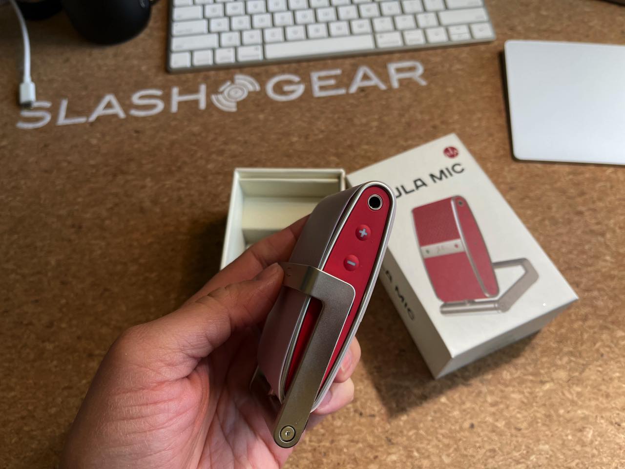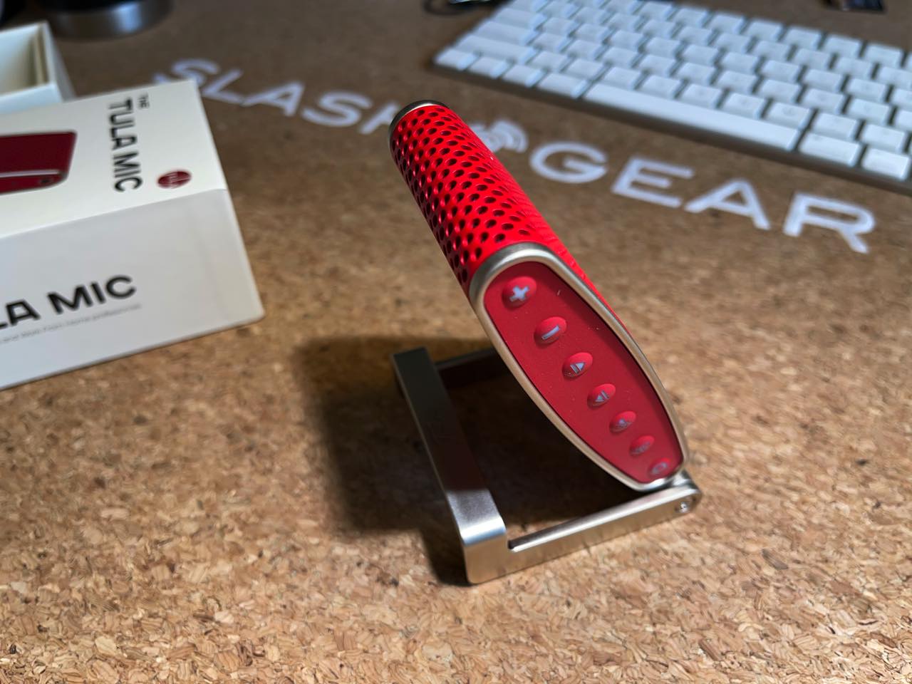 Both sides of the mic have a single row of clearly marked buttons, putting all the controls you need under your fingertips, literally. The mic comes with a base that can unfold into a stand or be removed with a simple quarter-turn mechanism. The back has a single hole, a USB-C port, for charging as well as data transfer. A rather unintended design "feature" of the Tula is that the USB-C cable itself can double as a stand when plugged in, just in case you forgot or lost the actual base.