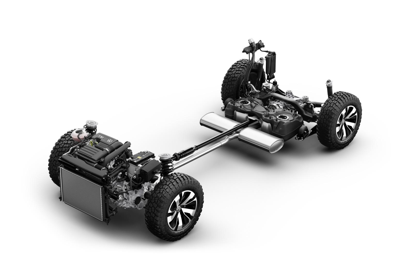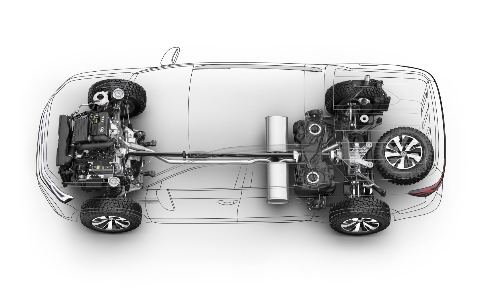 Inside, there's a digital dashboard with twin displays. 4MOTION all-wheel-drive is standard, and VW says that when it launches the production version in Brazil it will have both a gasoline/ethanol engine and a diesel engine to choose between.