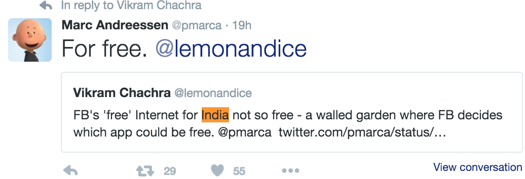 This afternoon Facebook CEO Mark Zuckerberg responded to comments about India's refusal to allow "Free Basics" in the country. While Facebook appeared to be bringing free internet to the world with this initiative last year – but as soon as it became apparent that not all was what it seemed, India responded. They responded by banning Free Basics altogether. Then earlier this month, they went a step further, issuing a Prohibition of Discriminatory Tariffs for Data Services Regulations, 2016. Today Zuckerberg responded.