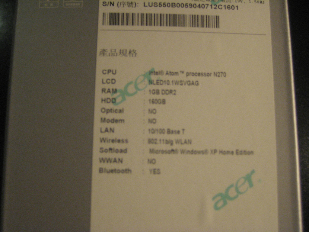 Still only just up for pre-order in most countries, somehow a 10-inch Acer Aspire One D150 has found its way to netbooknews.de just in time for a quick unboxing. This particular model, the mid-range netbook in some countries line-ups, has the older N270 Atom processor but the larger, 6-cell battery. And, going by these unboxing photos, it certainly is a big battery.