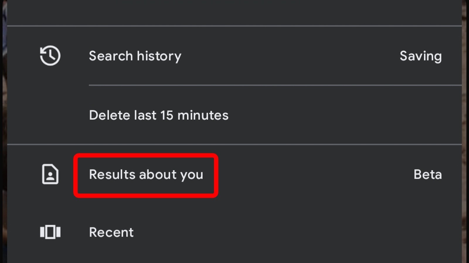 - Look for "Results about you" in the menu that opens.