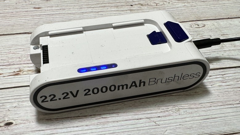 The battery has three LED lights on it to show the charge level, which is a nice touch, but it doesn't help you if your kids or roommates vacuum the day before and didn't plug it in when they were done. It's a small pain point, but actually, the rack itself is my main pain point with the vacuum overall.