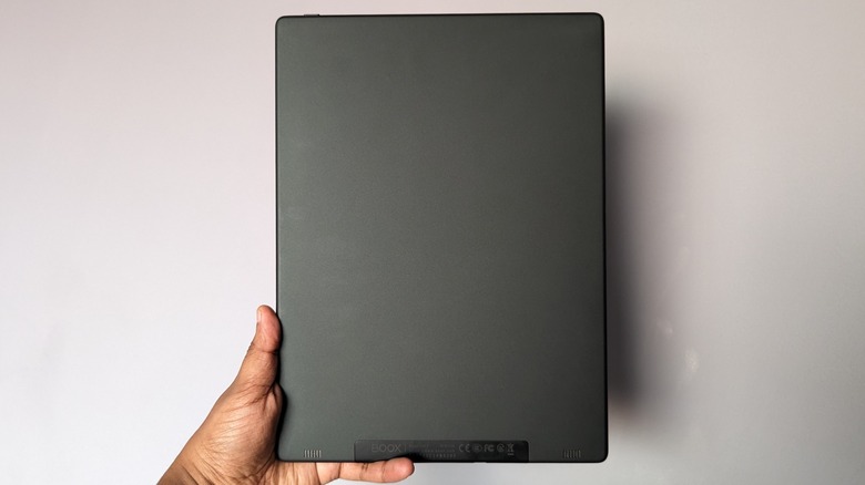 n e-reader is generally likely going to spend more time in your hands than a normal tablet would, and the quality of the materials and construction make this the best tablet I have ever held in my hands. You get a matte feel on the back, which smudges, but nearly not as easily as a glossy back would, and it is easy to wipe clean, too.