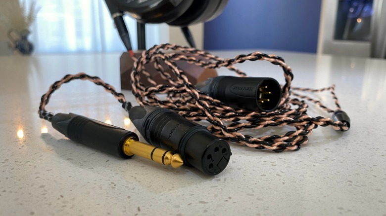 Audeze ships the LCD-5 with a cable terminated in a 4-pin male XLR connector. The implication is that the company thinks you should use a headphone amp with a balanced drive to the headphones for the best effect. An adapter to turn that XLR connector into a single-ended 6.35mm headphone hack is also included.