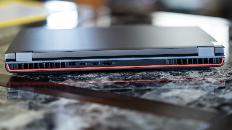 A multi-touch OLED screen is an available upgrade, too, along with a Lenovo Precision Pen 2. There are upgrades available for WLAN and Bluetooth, WWAN, and NFC support. The P16 Gen 1 comes ready with a list of security measures: NVMe, power-on, and supervisor passwords, fingerprint reader, and a self-healing BIOS measure that will restore the computer in the event of malware or corruption using secure backups. A notable improvement brought to the P16 Gen 1 is that hot air from the cooling system is directed out vents on the back side of the laptop, not the sides.