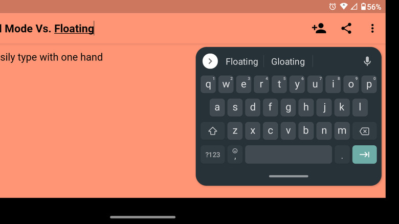 Gboard's one-handed keyboard has a complete complement of keys on-screen, but the keys are necessarily smaller than normal. That could be problematic for some users with thick thumbs, sketchy tapping skills, or poor eyesight. One-handed mode doesn't work in landscape orientation, but you can use Gboard in its floating mode to accomplish the same thing.