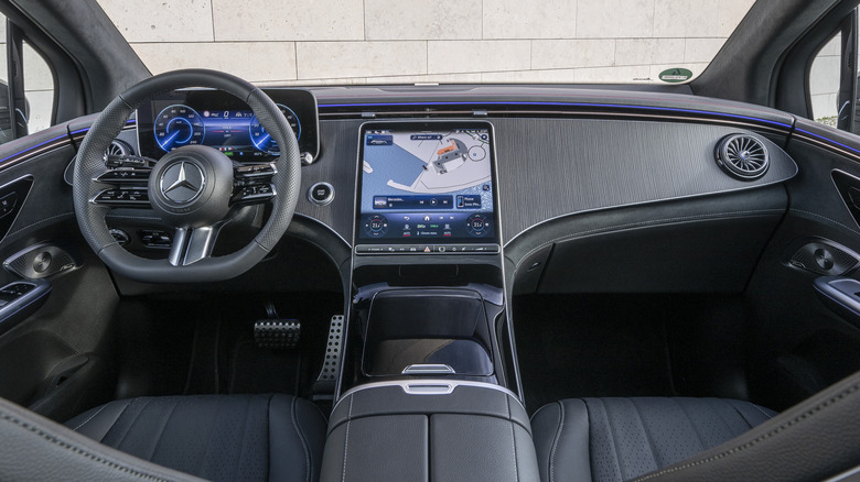 As for charging, both single- and dual-motor models top out at 170 kW DC fast charging. That means a 32-minute charge on a suitably-potent connection is enough to get you from 10% to 80%, Mercedes claims. On the typical Level 2 home charger, figure on 9.5 hours to go from 10% to 100%.