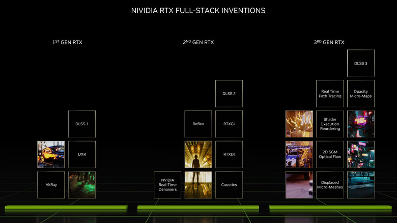 Nvidia brought more features to the Ada Lovelace architecture to take advantage of the extra performance. Nvidia Deep Learning Super Sampling 3, or DLSS 3 for short, is an in-house developed graphics processing pipeline combining three technologies. Those are DLSS Super Resolution, which first arrived in DLSS 2, Nvidia Reflex, and DLSS Frame Generation, which can create new frames thanks to cutting-edge AI and the RTX Tensor cores.