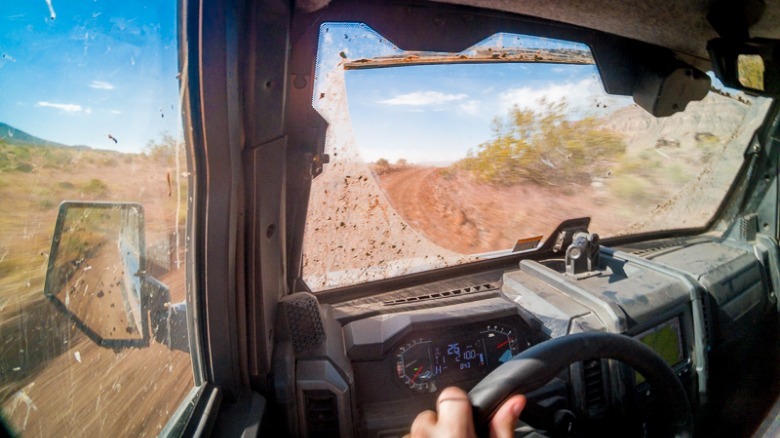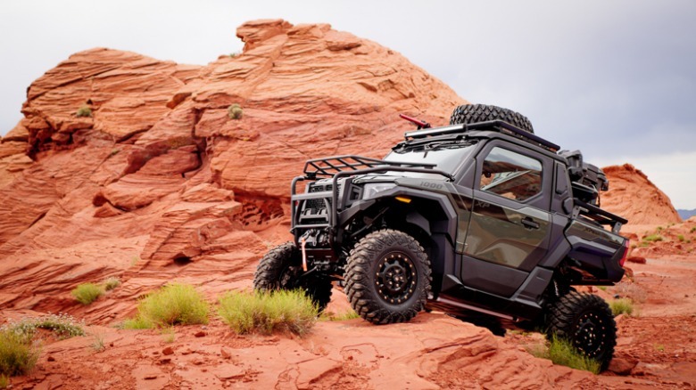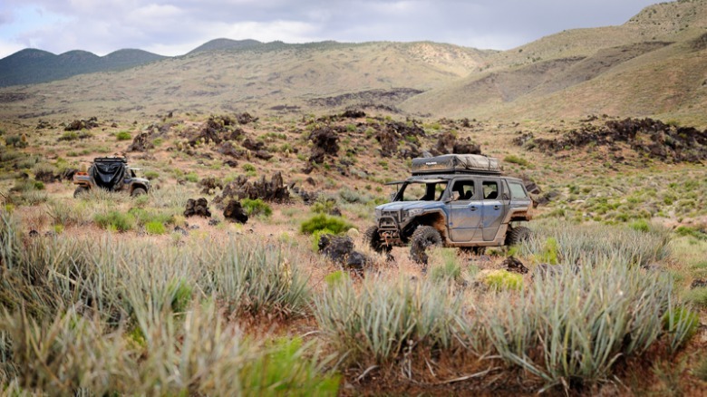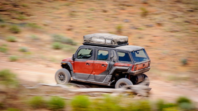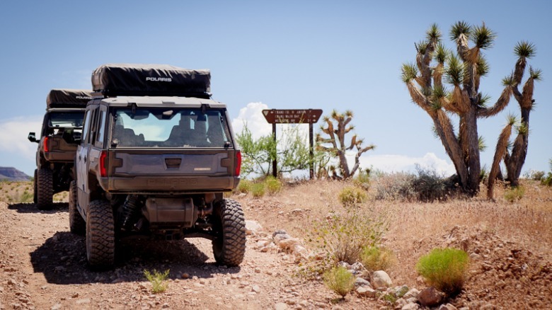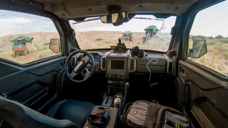 Even after one driver in our group experienced a low-speed rollover on the trail — which Polaris says was down to driver error — the Xpedition was still in driving condition. Though the windshield was cracked and some of the body panels knocked out of alignment, the vehicle's tube frame escaped unscathed, as did the driver. It's a reminder of how beneficial it can be to have an enclosed cabin, helping keep some of the trail's sharper edges at bay.