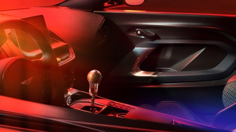 Starting from the outside, the Valour serves as a sort of "Greatest Hits" collection for Aston Martin. The angular fish mouth grille is reminiscent of Astons from the 1970s, yet it's still unfoundedly a supercar like the One-77. For the all-important engine, it's a twin-turbo 5.2-liter V12 that generates 704 horsepower and 555 foot-pounds of torque, about 14 more horsepower than the V12 in the current Aston Martin V12 Vantage. Of course, there's the six-speed manual transmission, which makes it, according to Aston Martin, the only front-engine V12 car made today with a stick shift. To make that superlative even more special, customers will be able to choose aluminum, carbon fiber, walnut, or titanium for the shift knob.