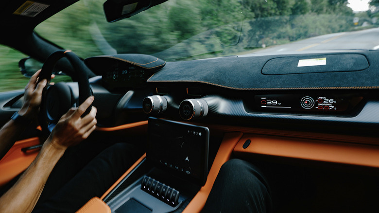 As much as I could have cogitated this new level of acceleration, that refinement makes up most of the conversation as Dr'ndak walks me through the car's controls. Not just Alcantara on nearly every surface to reinforce the sense of luxury a multi-million-dollar hypercar commands, either, but the way various drive modes entirely shift the character and characteristics of the driving experience.