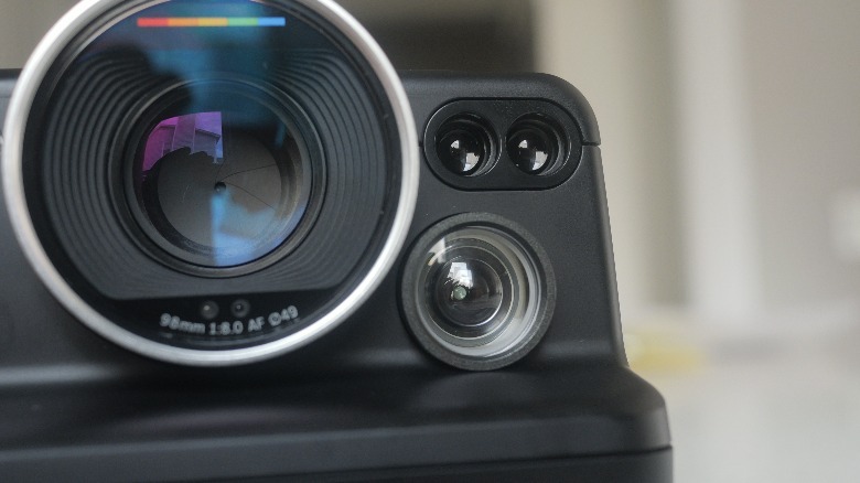 The lenses on each of these cameras are quite different. The I-2 uses a 98mm lens with a maximum aperture of F8. Since Polaroid film is a medium-format, you get about a 40mm equivalent field of view and F2.8 aperture. The classic OneStep uses a 103mm lens with an F14.6 aperture and focus fixed at infinity. These differences mean that the I-2 lens will be much better in low light, sharper while taking landscapes, and can close-focus on subjects. The I-2 lens also has a 49mm filter thread, while the OneStep has no convenient system for lens filters.