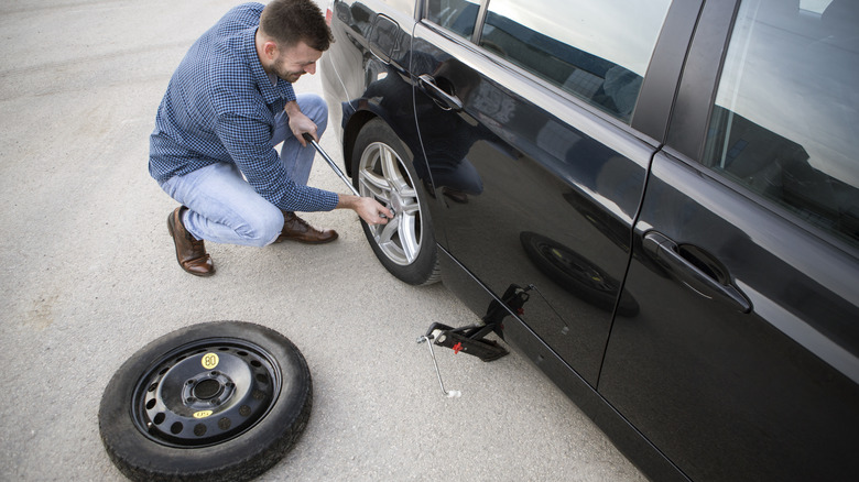 Getting a flat tire is annoying and an unfortunately common occurrence for most drivers. Fortunately, a lot of cars come with spare tires to get you back on the road (hopefully in the direction of a tire shop). But anyone who has swapped out their car's wheel and tire for a spare, also known colloquially as a "donut," has likely noticed that it doesn't look anything like the factory-equipped wheels on your car and is not only smaller in diameter, much significantly thinner.