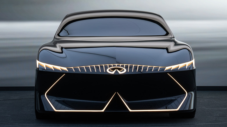 Arguably the most striking aspect of the design, though, is the automaker's electric interpretation of the grille. Gone are the familiar Infiniti double-arches, and in their place are more sculpted front fascia lines that have been LED illuminated.
