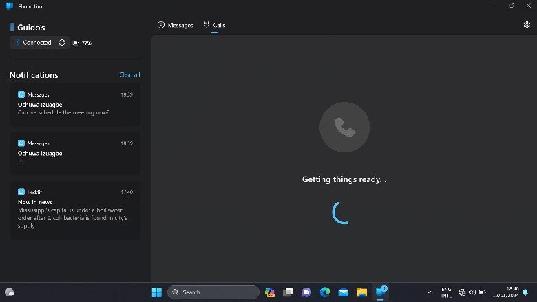 It may take a few minutes for your PC to sync, but once it does, your notifications should appear directly on your PC within the Phone Link app. You'll also be able to make and receive calls, and same goes for messages as well. This reduces how often you need to pick up your iPhone while working on your PC.