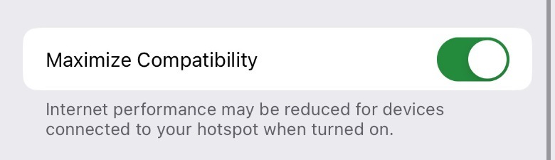 If you're trying to share mobile data with a group that's a little spread out in terms of space or own older devices that don't support 5GHz, you can enable the Maximize Compatibility feature to give them internet access. By turning on Maximize Compatibility, which is available for iPhone 12 models onwards, you can revert your iPhone's mobile hotspot to 2.4 GHz, which is more compatible with a wider range of devices. To do this, follow these instructions: