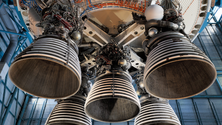 Even these engines, though, are tiny compared to the largest engines ever built. The Wärtsilä-Sulzer RTA96-C is a two-stroke turbocharged diesel engine that powers container ships that can weigh as much as 200,000 tons. The engine itself is 2,300 tons and almost 100 feet long, with the huge machine generating 107,390 horsepower. More impressive were the engines powering the super-heavy-lift launch vehicle known as the Saturn V. At maximum power, the thrust produced by the rocket was 3.4 million kg, which is equivalent to more than 160 million horsepower.