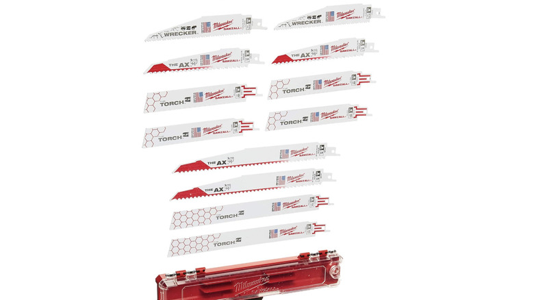 Milwaukee's Sawzall reciprocating saw comes in corded and cordless versions and can be found on construction sites and in auto repair shops everywhere. A Sawzall is useless without the right blade, and the Milwaukee Electric Tool Sawzall Reciprocating Saw Blade Set that sells for $23.34 on Amazon (less than $2 per blade) has something for every task, from trimming tree limbs to slicing through car frames. It even comes with a plastic carrying case with a clear lid and locking latch to keep your blades organized.