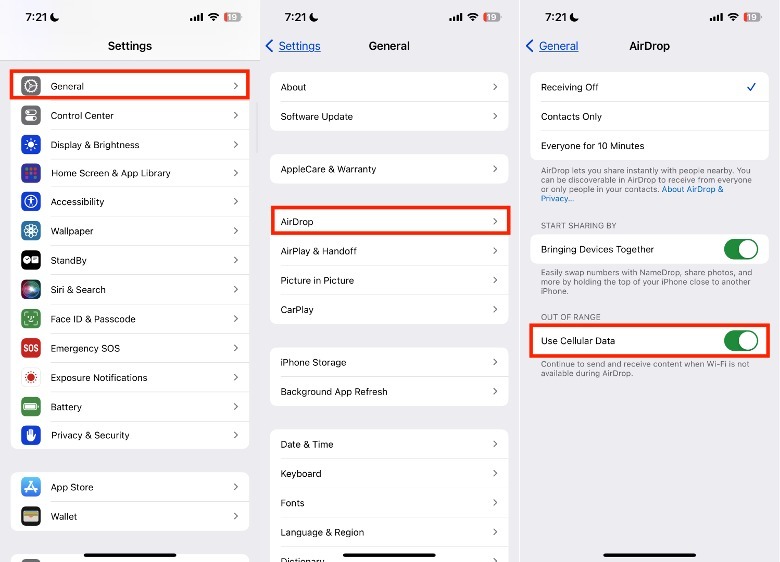 While you're at it, you can use Cellular Data to send and receive things via AirDrop if you are having Wi-Fi-related issues. Introduced in iOS 17.1, this feature is available for iPhones, as well as iPads equipped with cellular data. For this feature to work, both the sending and receiving Apple devices must be updated.