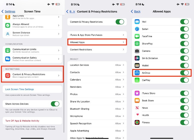 When Apple launched Screen Time in 2018, it raised a few eyebrows from other companies who profit from screen addiction. Designed to help individuals and families navigate their screen usage, Screen Time added a slew of features to measure and manage app restrictions, communication limits, screen distance, and so on. While Screen Time's features added a much-needed layer of control for Apple device owners, it also introduced possible complications with AirDrop via its content and privacy restrictions. Here's how to fix it: