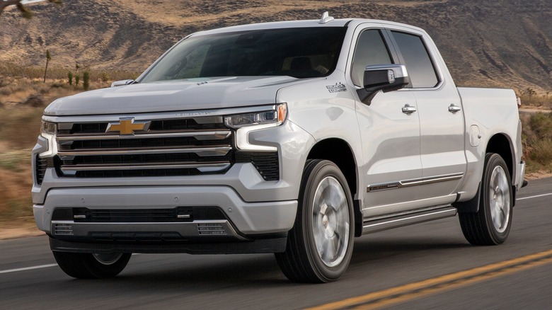 The Chevrolet Silverado 1500 is another full-size pickup truck rivaling the Ram 1500 and Ford F-150. For the 2024 model year, the Silverado 1500 has a $36,800 starting price and nine trim options: WT, Custom, Custom Trail Boss, LT, RST, LT Trail Boss, LTZ, ZR2, and High Country. The lineup has four engine options, the base variant being a 2.7 liter turbocharged inline-4 with 310 horsepower and 430 lb-ft of torque. The engine mates with an eight-speed automatic transmission, powering the rear wheels as standard.