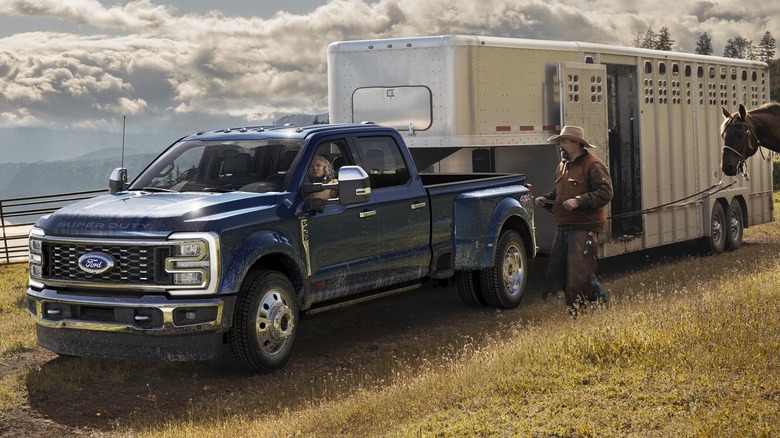 Ford configures the F-450 with a standard 5th wheel or gooseneck hitch package. Furthermore, the F-450 has many optional packages, including a high-capacity gooseneck tow package, a heavy service front suspension package, and a 360-degree camera package. It also features additional driver-assist technologies like onboard scales with smart hitch, trailer theft alert, trailer navigation, pro trailer hitch assist, and intelligent adaptive cruise control.