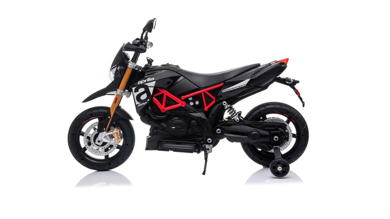 Offering a bit more power than the other motorcycles on this list, the Tobbi 12V Aprilia-style motorcycle is a good option for children between the ages of three and six, who want to experience more speed and power than a 6V motorcycle can provide. That said, although the bike can go as fast as 3.1 mph, it's still safe to ride, thanks to the training wheels, headlight and taillight, and non-slip handlebars. As your child gets more comfortable and confident on this motorcycle, you can remove the training wheels to help them master balancing and riding skills.