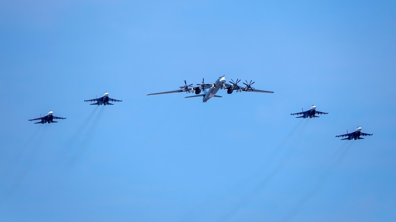 Bombers face uphill battles when they're on an attack mission because of their speed and size compared to faster and more agile fighter jets. If bombers are detected on radar, it can be difficult to accomplish a bombing run. It doesn't help that something that's nearly 160 feet long with a wingspan that's just as large is hard to hide from radar. Old bombers, which the Tu-95 is, despite still flying for Russia, typically had a tail gunner to handle enemy aircraft. However, this monstrous airplane has several tricks up its sleeve that keep it on the active roster.