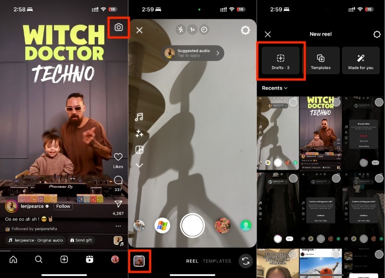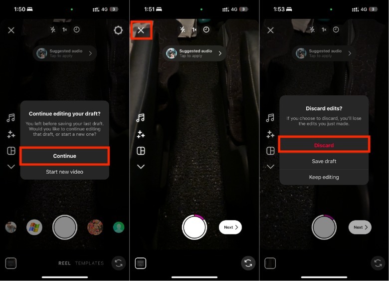 To delete a single Reel draft that you were working on before leaving the app without publishing, follow these steps: