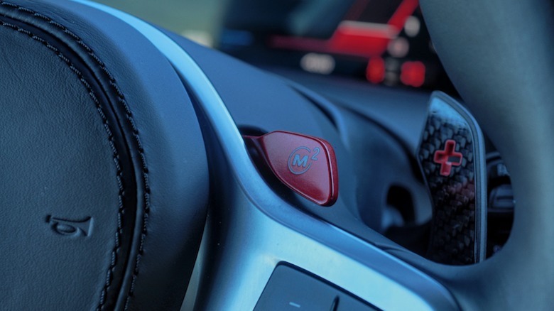 Better, then, to spend a few minutes configuring the red anodized "M" buttons on the steering wheel. There are two of them, driver-customizable to summon your preferred drivetrain setup with a tap (or, if you want the traction control dialed back, after a precautionary second tap). Since the X6 returns to the previous settings when the M button is pressed again, it's a much easier way to flip between an everyday driver and something more fun.