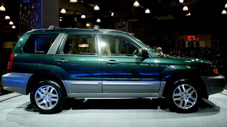 The first-generation Subaru Forester was in production from 1998 to 2002. These models were a parts bin exercise using Subaru's proven Impreza platform. They used a 2.5-liter four-cylinder engine with 165 hp. While it wasn't Subaru's most powerful vehicle, it rivaled Suzuki Grand Vitara's and Honda CR-V's V6 and four-cylinder engines.