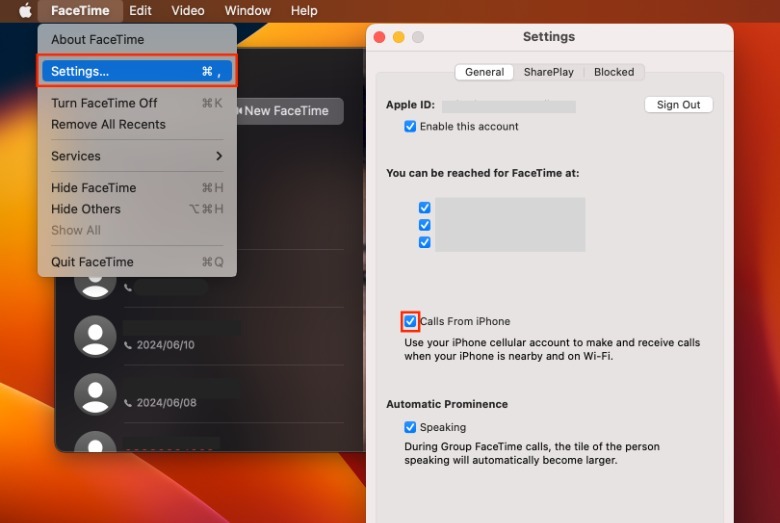 - In the upper-left corner of the screen, tap FaceTime > Settings.