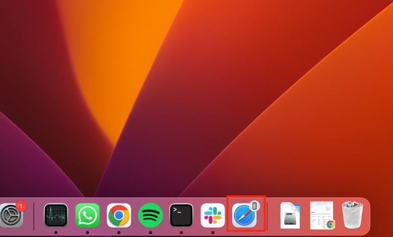 To use Handoff, simply open one of the designated Apple apps on your iPhone, like Safari. Then, on your Mac, watch out for the app icon to appear on your dock with a little gray circle with an iPhone silhouette inside. When you hover over it with your mouse, it should have "From iPhone" under its app name.