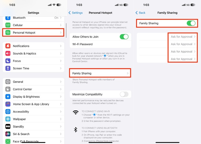 Next to the name of the family members you want to give automatic access to your personal hotspot, tap Ask for Approval.